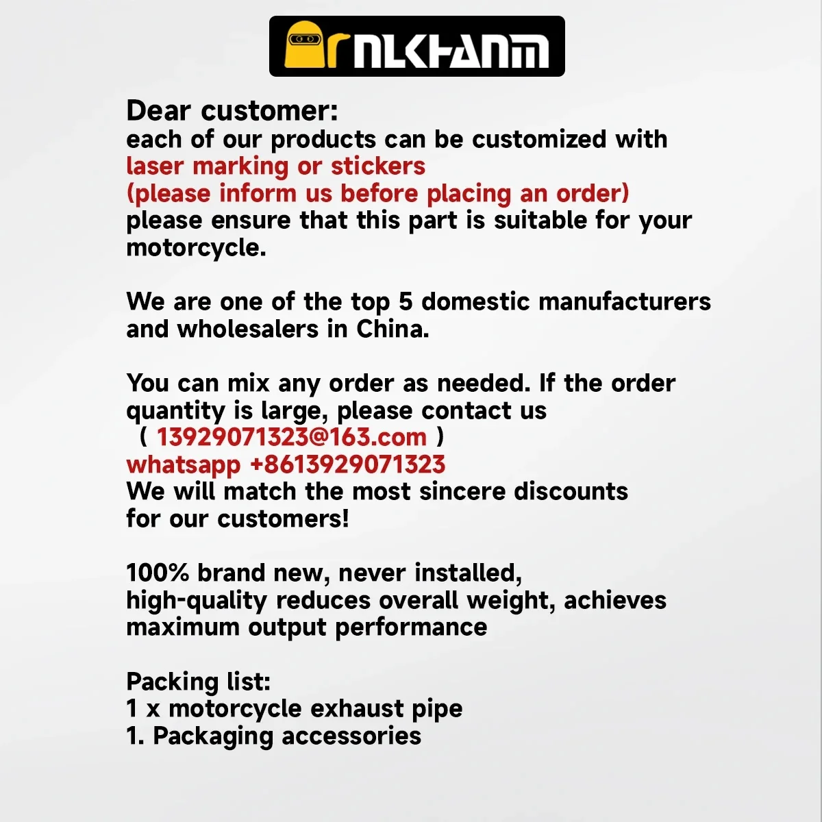 Our company is a manufacturer specialized in the research,Our main product are mocycle muffles and rear mudguard . All of our products comply with international quality standards and are greatly appreciated in a variety of different markets throughout the world.